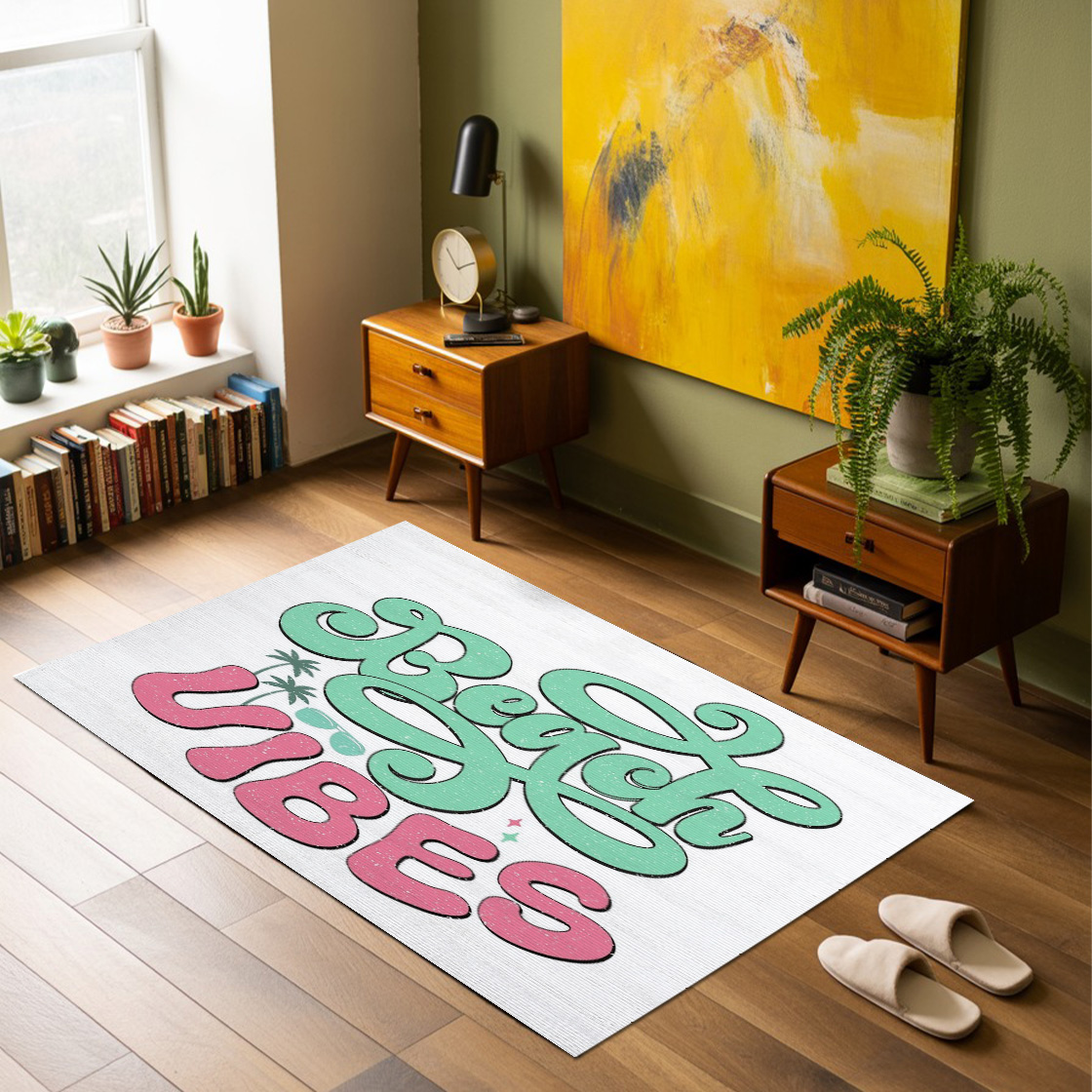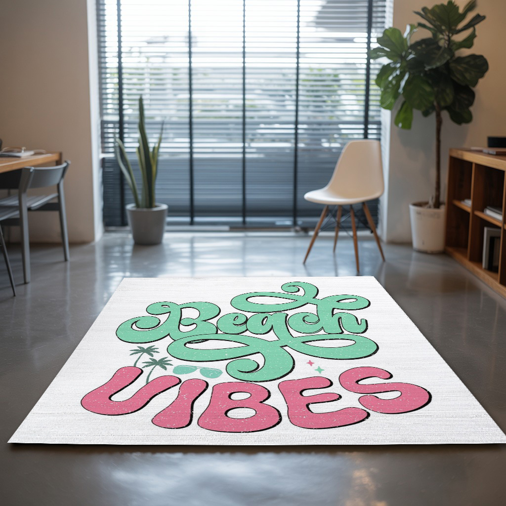 Beach Vibes Typography Summer Design Rug