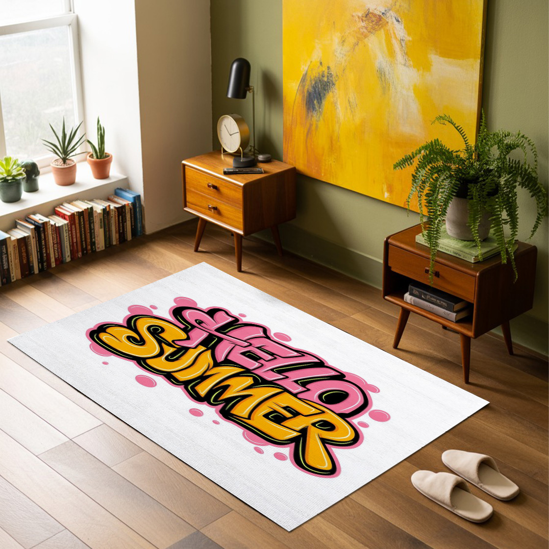 Handwritten Graffiti Art About Summer Rug